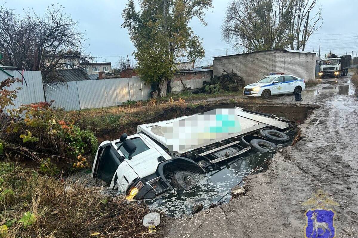 Необычное ДТП произошло сегодня в Куйбышевском районе Самары. Рядом с контейнерной площадкой на пересечении улиц Новосельской и Продольной мусоровоз провалился в выгребную яму.