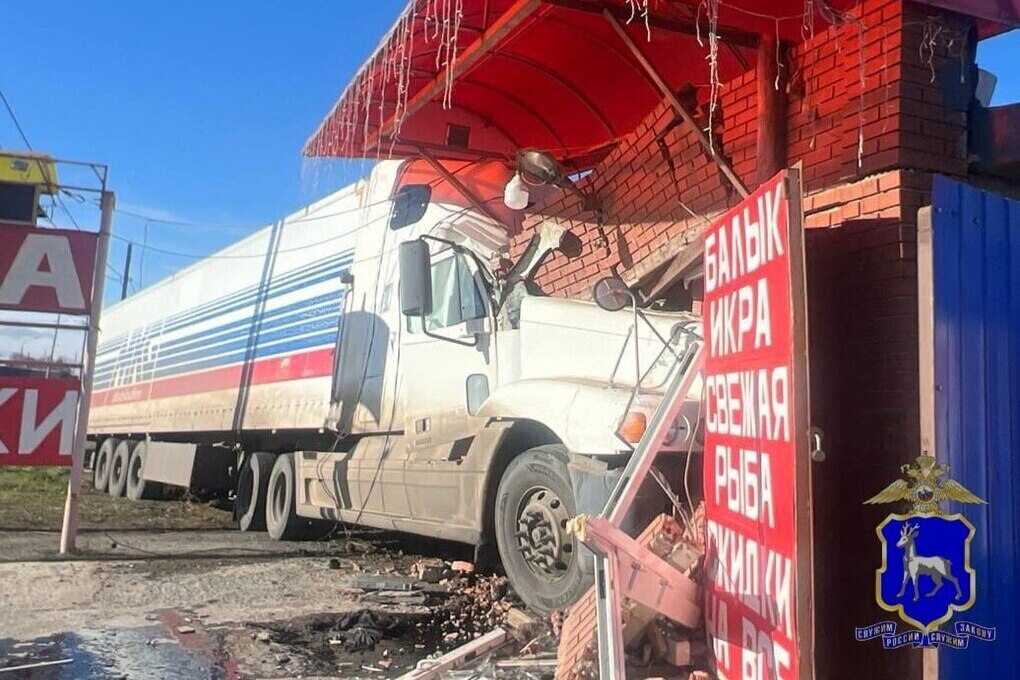 36-летний мужчина на грузовике Freightliner ехал с Москвы в сторону Самары. На улице Советской, 49 села Переволоки слетел с проезжей части на левую обочину и врезался в магазин.