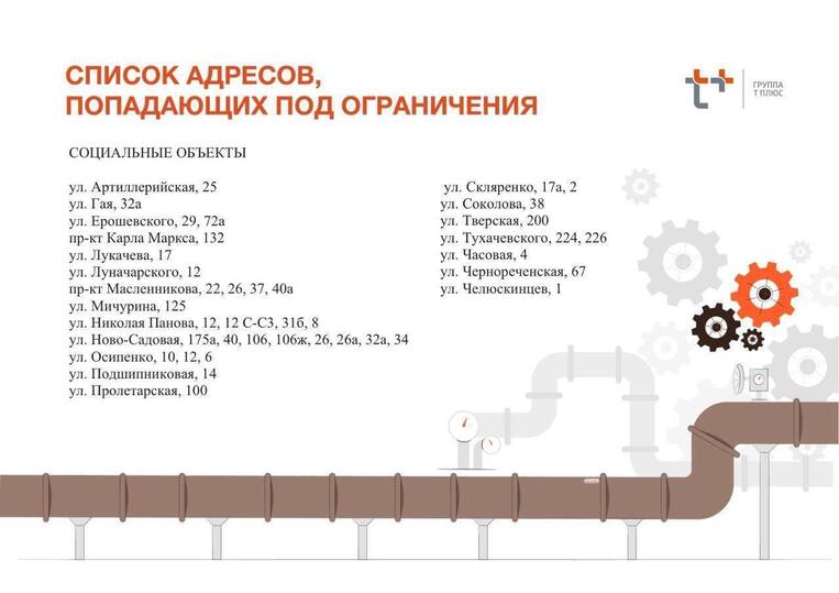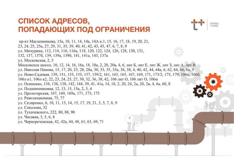 В связи с проведением работ возможно временное снижение температуры горячей воды и отопления в отдельных домах указанных районов. Полное восстановление подачи тепла и горячего водоснабжения планируется до конца текущего дня 21 ноября.