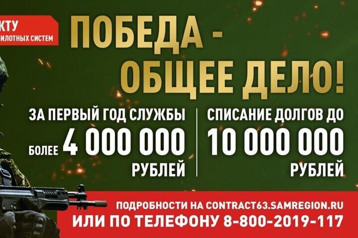 С 1 января 2026 года в Самарской области увеличена единовременная выплата для тех, кто заключает контракт с Министерством обороны России. Теперь сумма составляет 1,5 млн рублей, а за первый год службы военнослужащий сможет получить выплаты более 4 млн рублей. Кроме того, предусмотрена возможность списания долгов до 10 млн рублей.